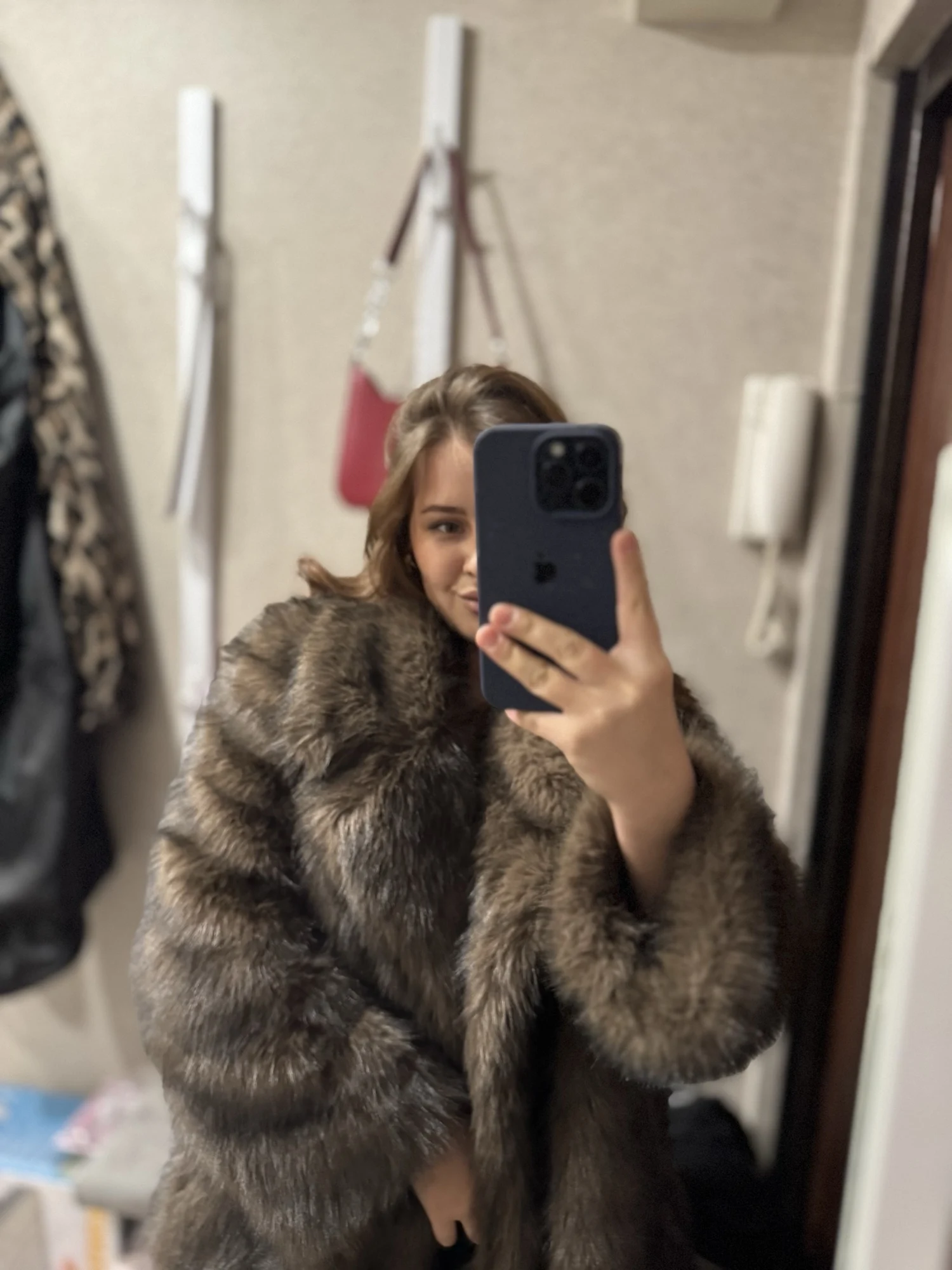 Größe L passt perfekt: 1,70 m groß, Brust 98 cm, Taille 70 cm, Hüfte 98 cm. Normalerweise S/M → Oversize/fluffig, Ärmel lang genug, sehr bequem.